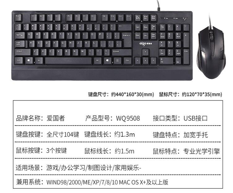 愛國者9508電腦鍵鼠套裝有線鍵盤鼠標(biāo)USB接口臺(tái)式筆記本辦公家用