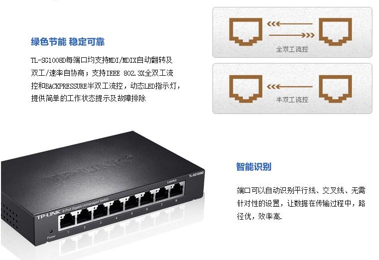 TP-LINK TL-SG1008D 8口千兆交換機 鋼殼高速1000M網(wǎng)絡(luò)tplink安防監(jiān)控交換機八口