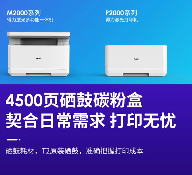 得力T2原裝硒鼓墨盒碳粉墨粉M2000DW M2000DNW M2000N DN NW P2000D P2000W 2000激光復(fù)印機打印機粉盒通用